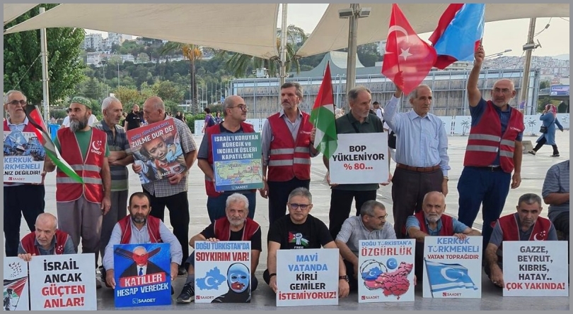 Terör devleti İsrail ve destekçisi ABD’ye karşı Filistin direnişine destek için her hafta cumartesi günleri düzenli olarak yapılan eyleme İzmirliler de büyük ilgi gösteriyor. Eylemde dünya genelindeki zulüm yaşayan diğer Müslümanları hatırlatan dövizlere de yer veriliyor. “Doğu Türkistan’a özgürlük! Kerkük Türkmeneli yalnız değildir! Kerkük Türkmeneli vatan toprağıdır!” yazılı dövizlerin de taşındığı eylem etkinlik alanından geçen İzmirli vatandaşlardan büyük ilgi ve destek görüyor.
