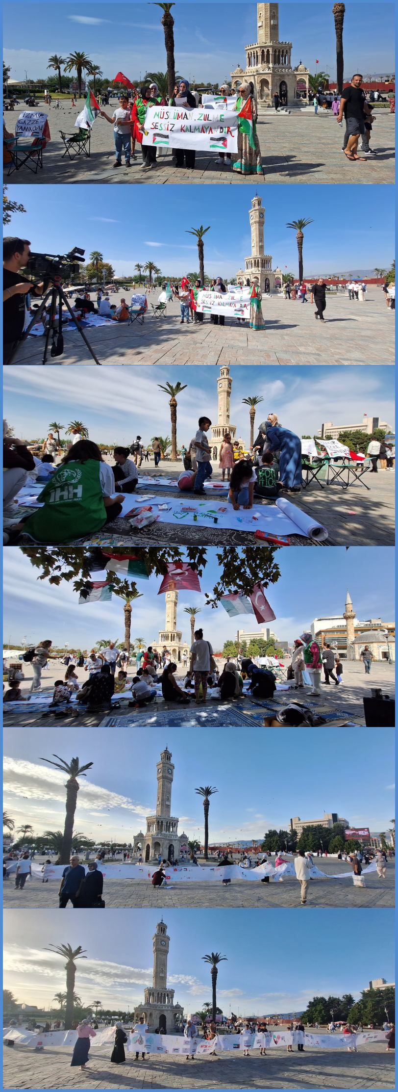 81 ilde eş zamanlı olarak düzenlenen “Filistinli Çocuklar İçin Çiz” etkinliği İzmir’de de büyük ilgi gördü. Yetim Vakfı İzmir İl Koordinatörlüğü'nün IHH İzmir Şubesi'den de destek alarak Konak Meydanı Saat Kulesi önünde düzenlediği etkinliğe aileleri ile birlikte katılan İzmirli çocuklar İsrail’in Gazze ve Filistin’de yaşattığı zulmü resmederek farkındalık oluşturmaya çalıştı.