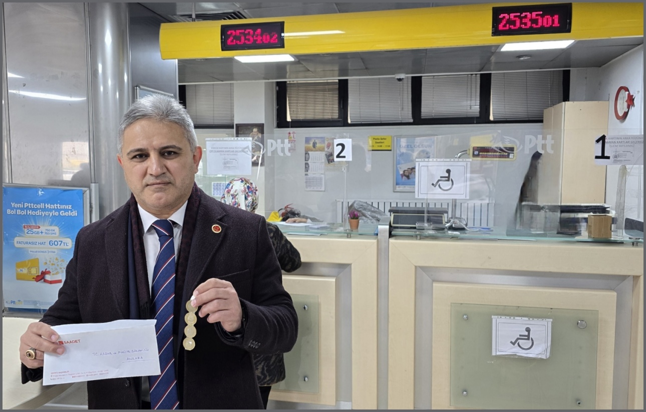 Basın açıklamasının ardından partililerle birlikte PTT Basmane Şubesi’ne giden Erduran, 4 madeni 1 lirayı bir zarfa koyarak posta yoluyla Maliye Bakanlığı’na gönderdi. Bu sembolik hareketle, 4 TL’nin geçmişteki alım gücüyle bugünkü değersizliğine dikkat çekildi.