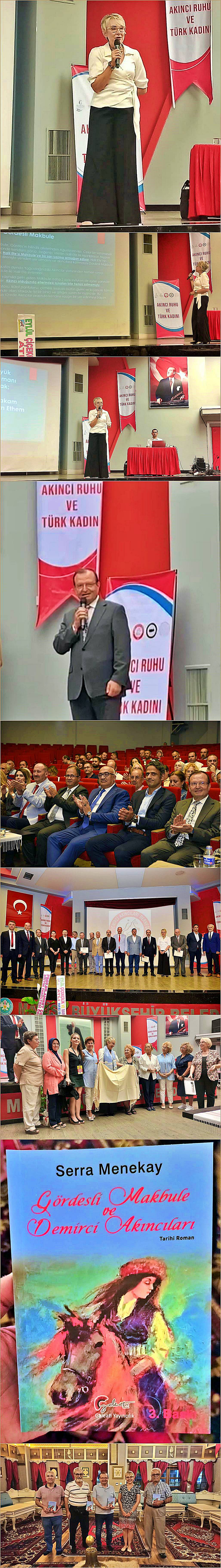 Manisa CBÜ, 30. yıl etkinliği programında, Demirci Akıncılarını tanıtan bir konferansa vesile oldu. Dr. Serra Menekay “Akıncı Ruhu ve Türk Kadını” adlı sunumunda yazdığı “Gördesli Makbule ve Demirci Akıncıları” adlı kitabında yazdıklarını paylaştı. Bu kitap, vatan sevgisinin, aile ve millet mefhumunun, ar namus duygusunun doruğa yükselip, çağlayan misali deşarj olmuş halini gösteriyor. Tabii deşarj olabilmek için şarj olmak gerekiyordu. Bu tarihi roman için kaynakçada 60 a yakın kitap okunmuş, duygu ve düşünceler ilmek ilmek dokunmuş, yürek, zihin ve duygular böylece şarj olmuş. Kim bilir, bu okumalar, düşünce ve duyguları nasıl fokurdattı, uyku ve istirahati nasıl bedenden attı da beyinde ne fikirler çatlattı… Bunu kitapta yazdıklarını anlatırken, anlaşıldı ki, bu kitap yürekle yazılmıştır. Günümüz kısır siyasi çekişmelerin, riyakârlığın kol gezdiği ortamında, buram buram vatan sevgisi ve samimiyet kokan böyle bir atmosferi özlemişiz. Anlatan, zihin ve duygu olarak şarj olmuş halde samimi ve yüreğiyle konuşunca, zaman zaman bir ananın müşfik yüreğinin de etkisiyle duygular bir çağlayana dönüştü… Her şeyi madde ve para ile ölçmeye alışan gençlerimizin, parasız, pulsuz ve dahi çulsuz haliyle kadın erkek nasıl bir Milli Mücadele verildiğini öğrenmeleri açısından elden ele, gönülden gönüle anlatılacak, roman tadında bir tarih… Tebrik ve teşekkürler, Doktor Serra Menekay hanımefendi.